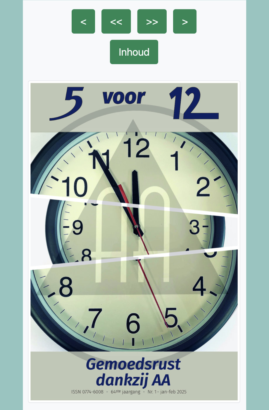 5 voor 12 jaar 2025 (6 nummers per jaar / 56 pagina’s per nummer / prijs voor één jaar / of 336 pagina’s verhalen en nieuws).